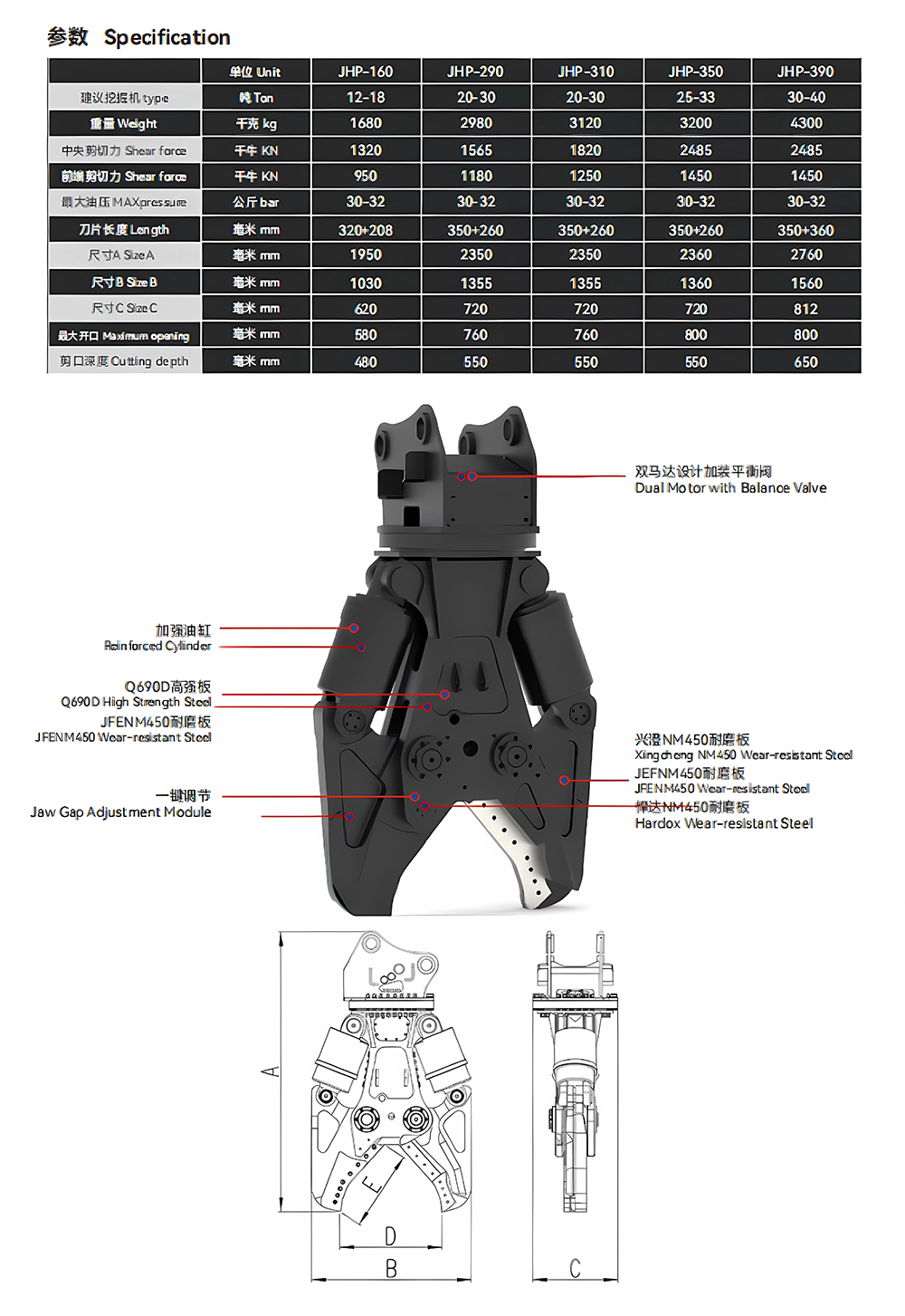 3.360° dual-motor rotation with balance valve precision control. Reinforced cylinder boosts shearing force