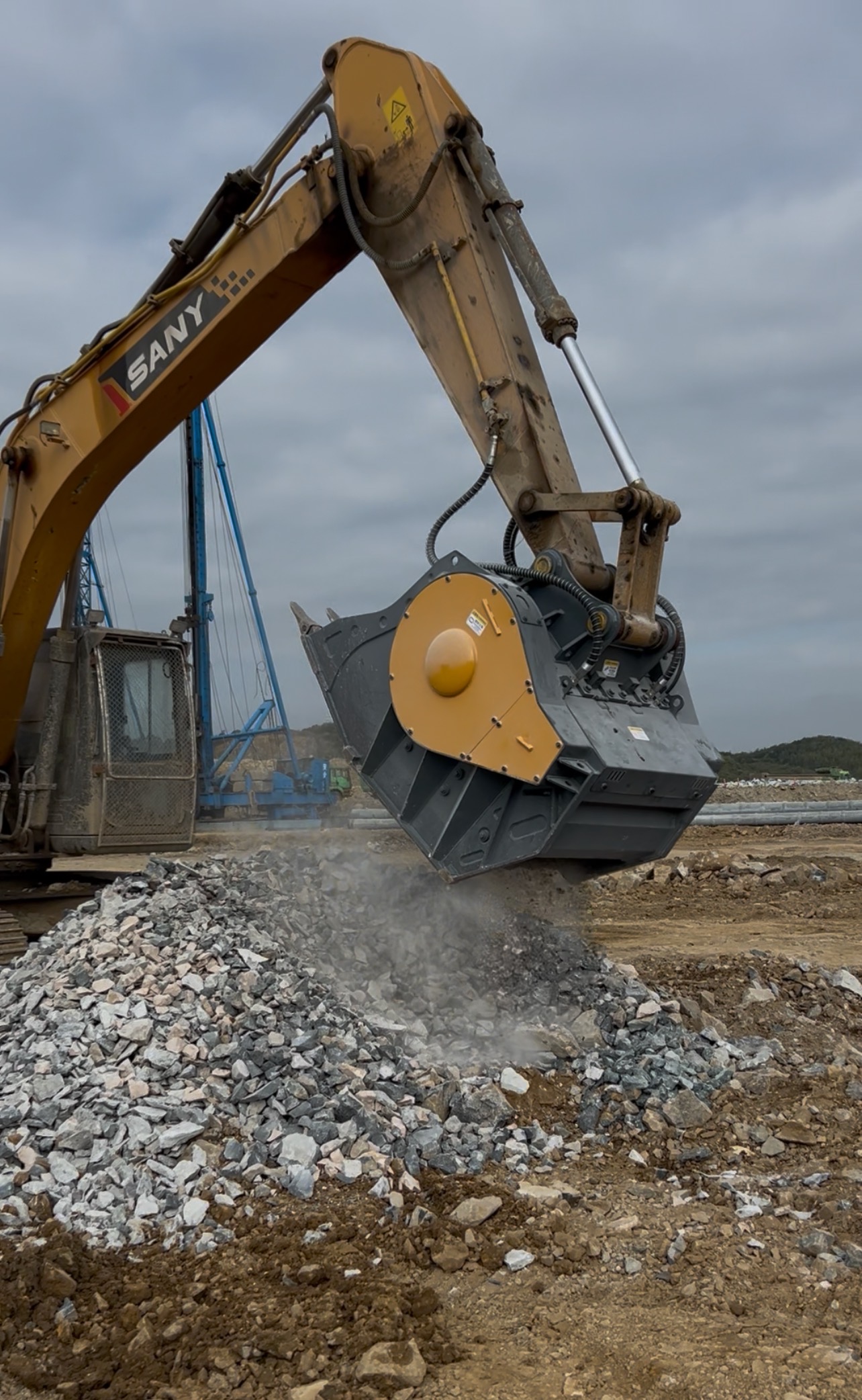 Particularly suitable for in-site material crushing and recycling operations. Demolition sites, Road construction, Pipeline backfilling, Hydraulic engineering, Mining, Sand production Construction waste, concrete blocks, cobblestones, bluestone, basaltand more